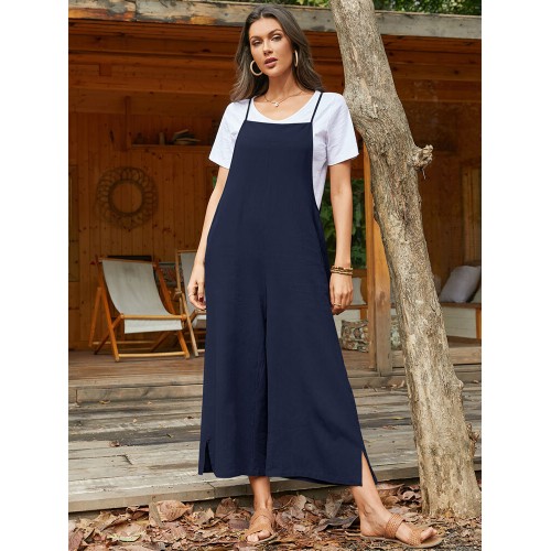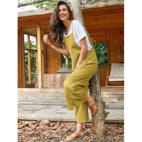 Pocket Solid Loose Fit Brief Summer Jumpsuit