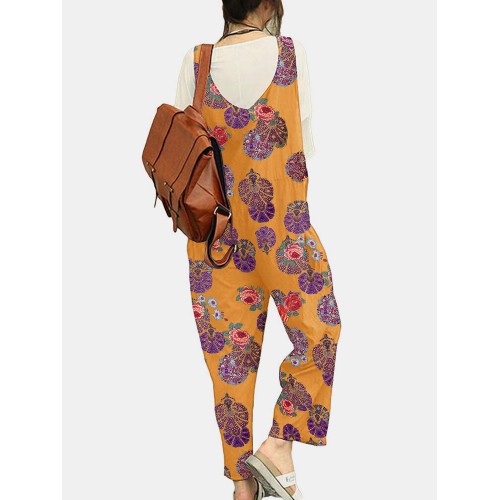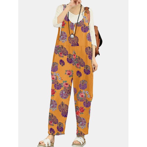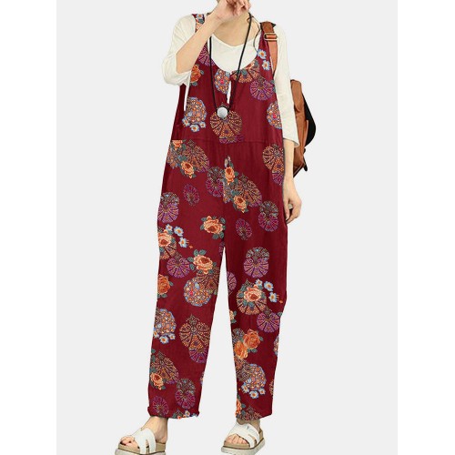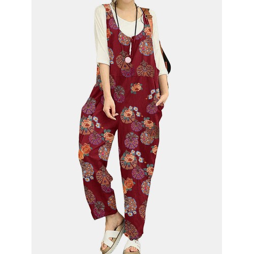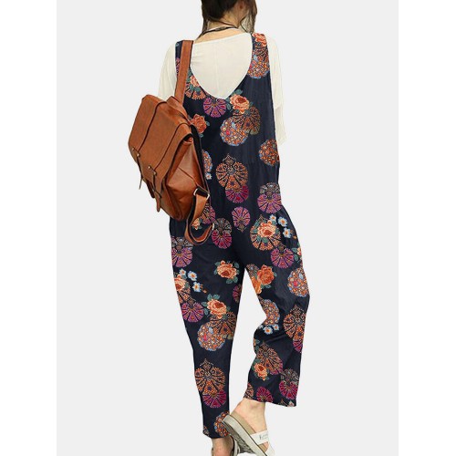 Tribal Flower Print Wide Leg Jumpsuit For Women