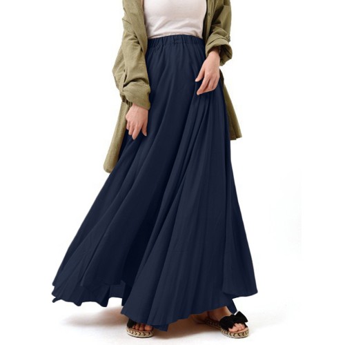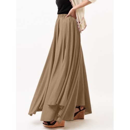 Casual Solid Color High Waist Pleated Irregular Hem Holiday Swing Maxi Skirts