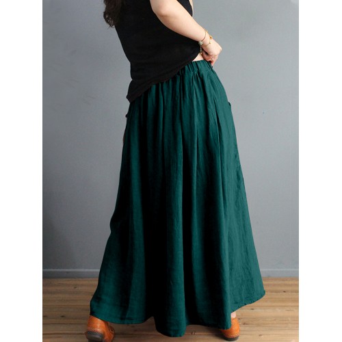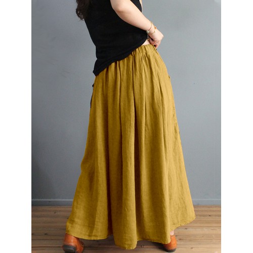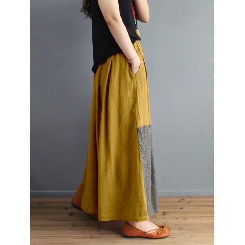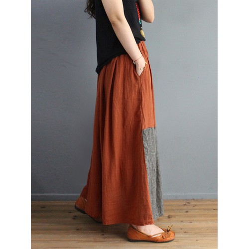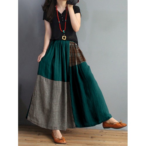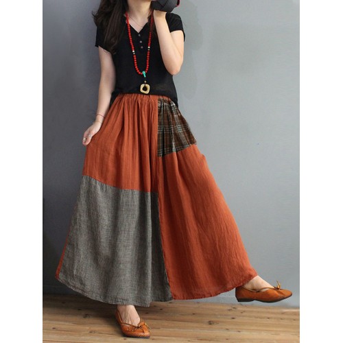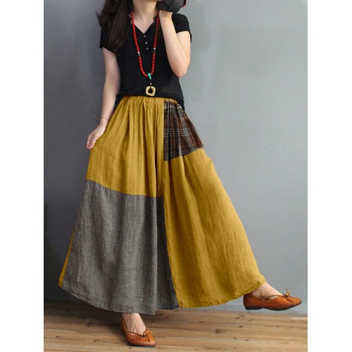 Women Plaid Patchwork Elastic Waist Swing Skirt With Pocket