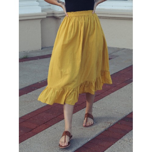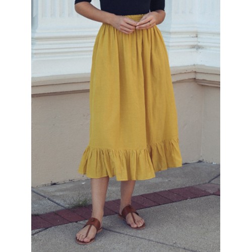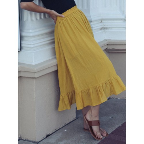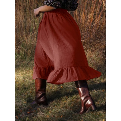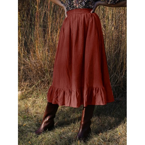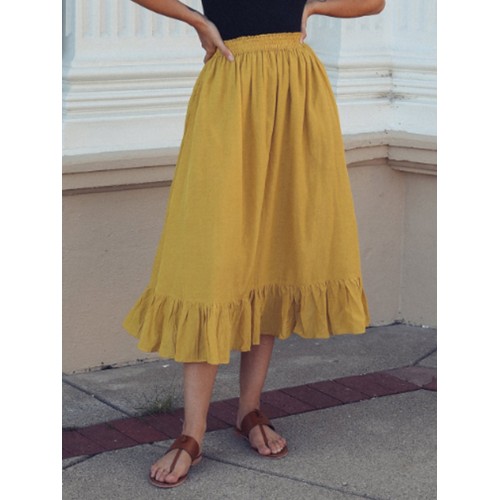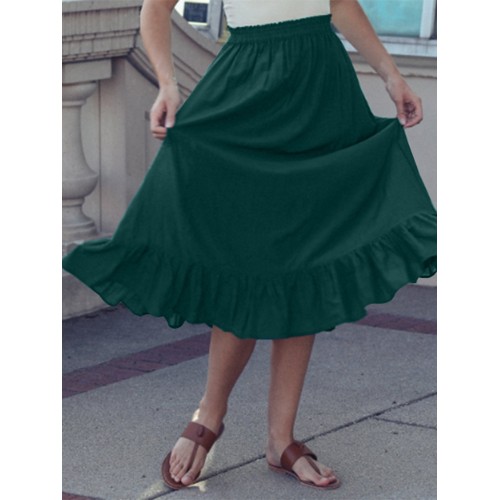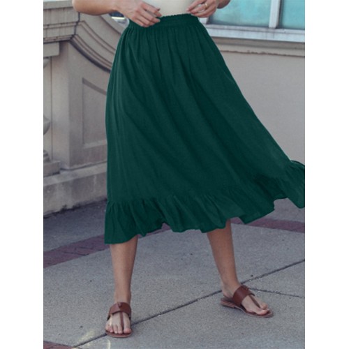 Solid Color A Line Ruffle Hem Elastic Waist Pleated Casual Skirts For Women