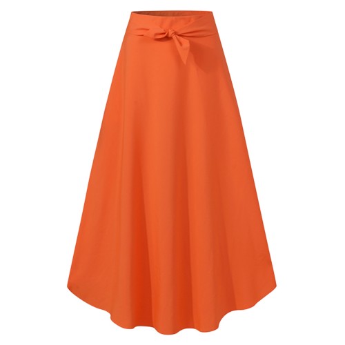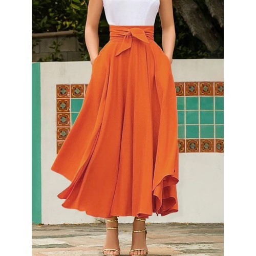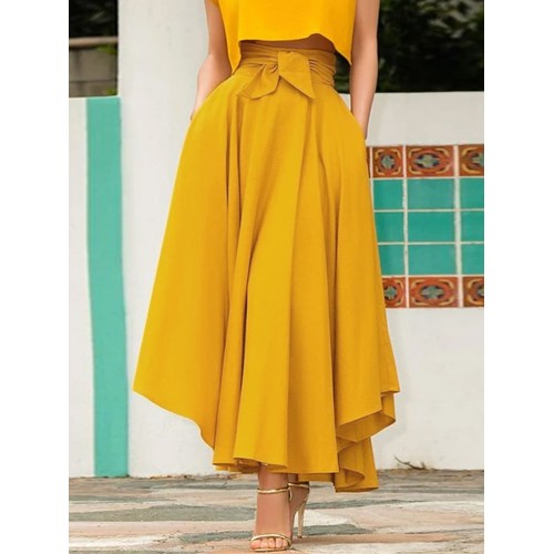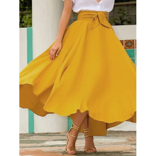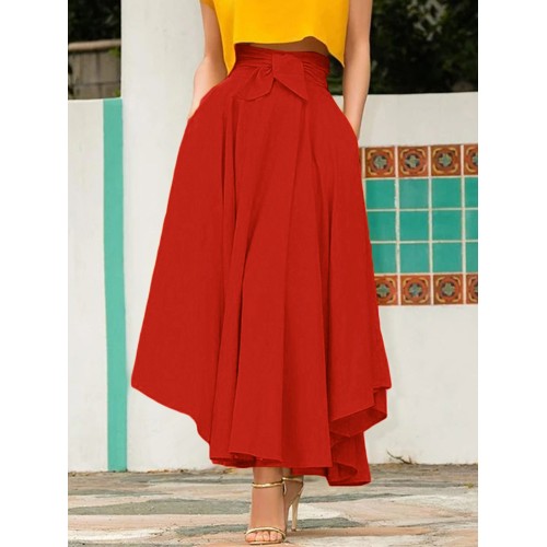 Solid Color High Waist Belted Side Zipper Irregular Hem Casual Skirts