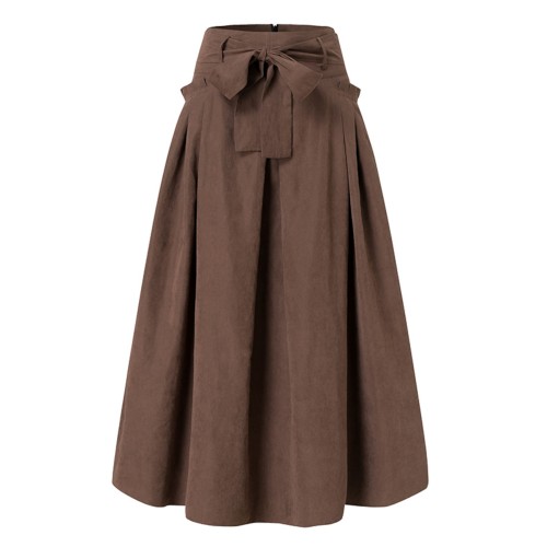 Women Solid Side Pockets Lace Up Party A Line Skirt with Back Zipper
