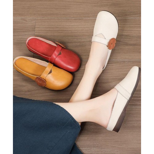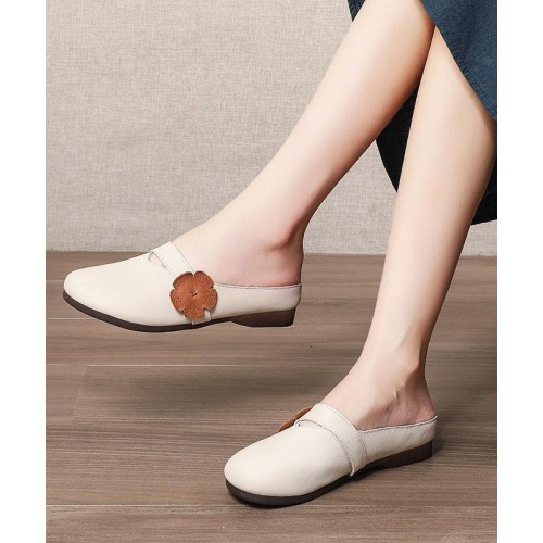 Classy Buckle Strap Beige Genuine Leather Slide Sandals