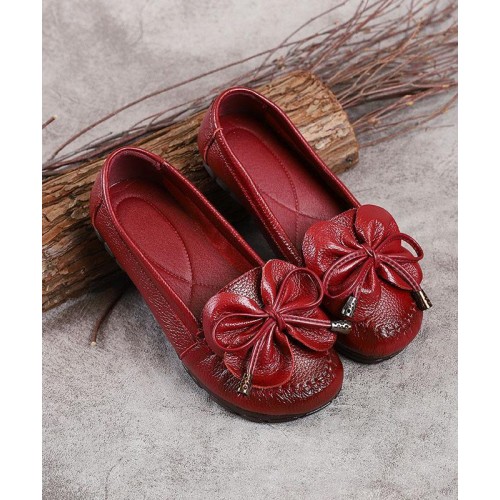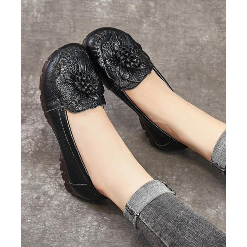 Black Bow Flat Shoes Genuine Leather Handmade Flat Shoes